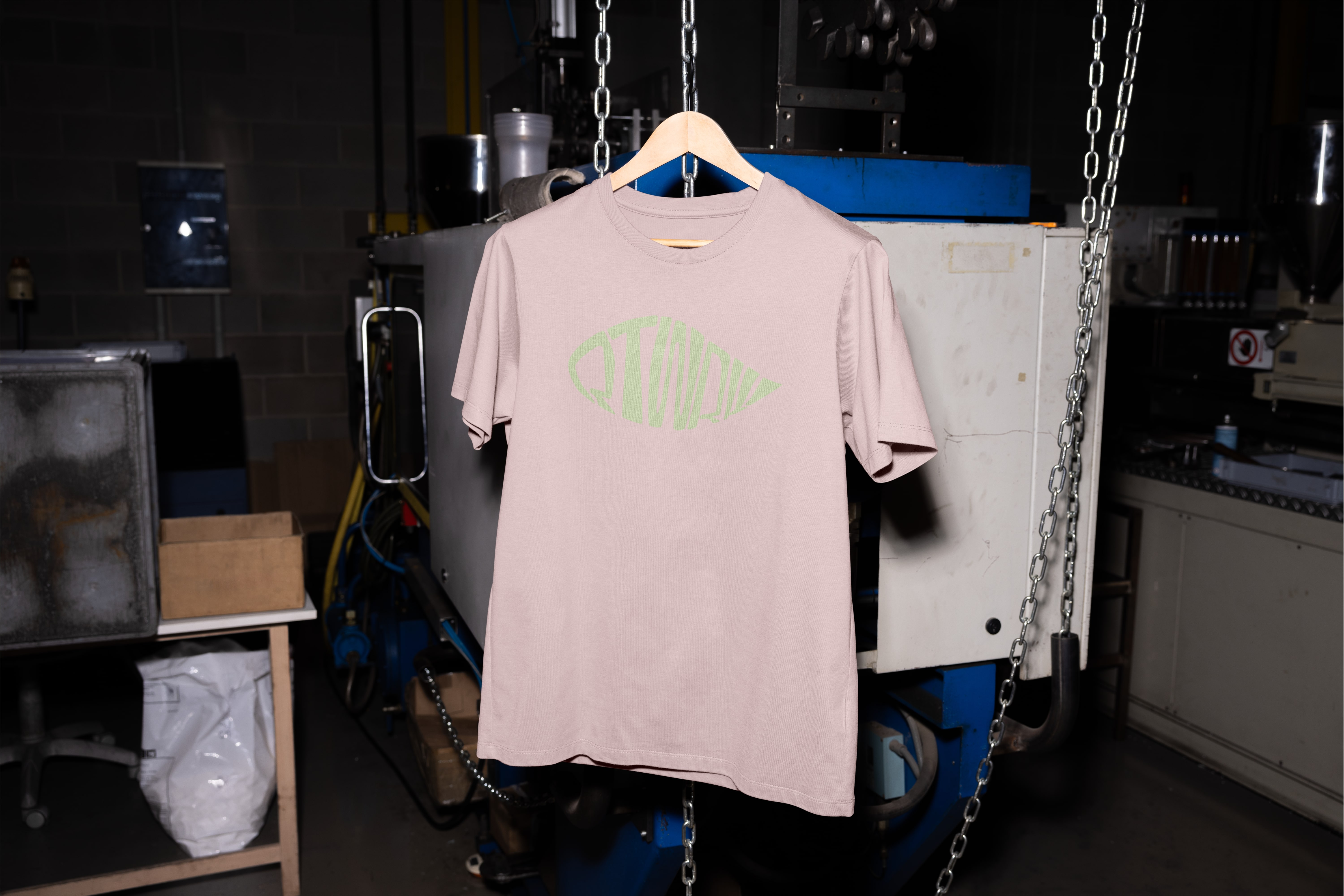 A contemporary visual identity for a clothing brand, combining bold forms with expressive applications. The project spans apparel, photography direction, and brand visuals.